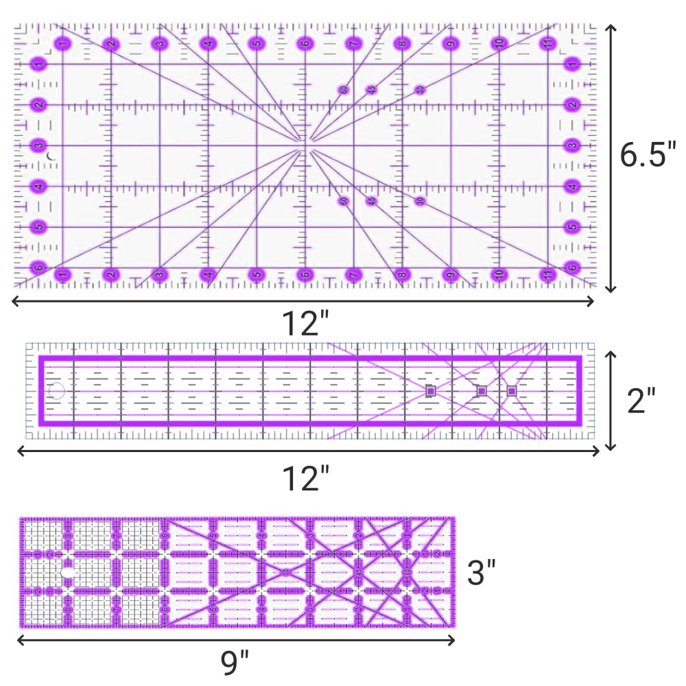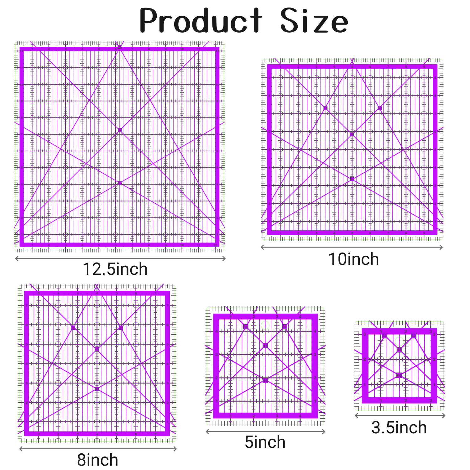 - Quilting Rulers:Includes 5 quilting square rulers (3.5",5",8",10",12.5") and 3 quilting rulers (6.5"x12",2"x12",3"x9") to meet all your patchwork needs