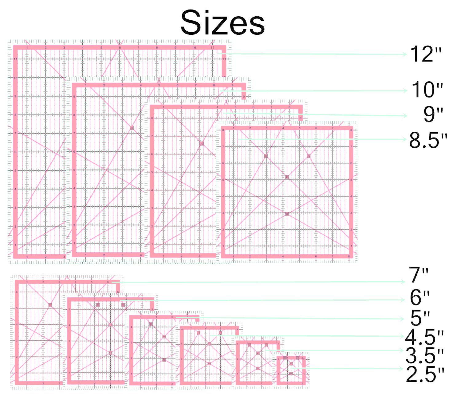 - Good Value:Quilting rulers includes 10 quilting square rulers (2-1/2",3-1/2",4-1/2",5",6",7",8-1/2",10",12")to meet your needs.The non-slip rings keep the quilting templates in place to ensure cutting accuracy