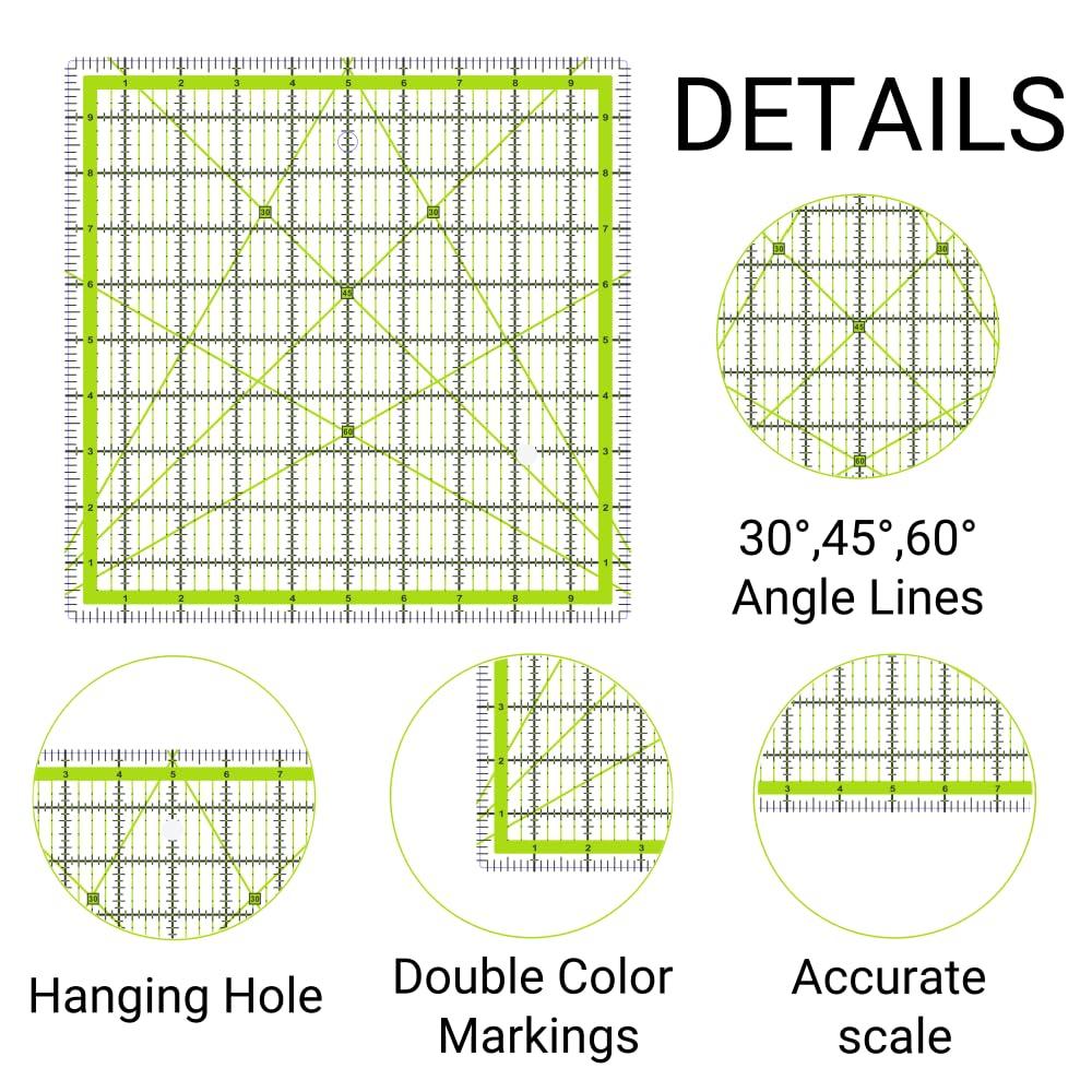 - Enduring Material: Made from high-quality acrylic,these quilt rulers are 3mm thickness and sturdy.The square rulers for quilting is easy to store with the hanging hole