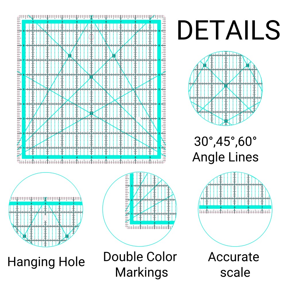 - Enduring Material: Made from high-quality acrylic,these quilt rulers are 3mm thickness and sturdy.The square rulers for quilting is easy to store with the hanging hole
