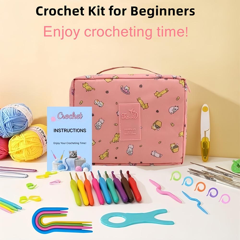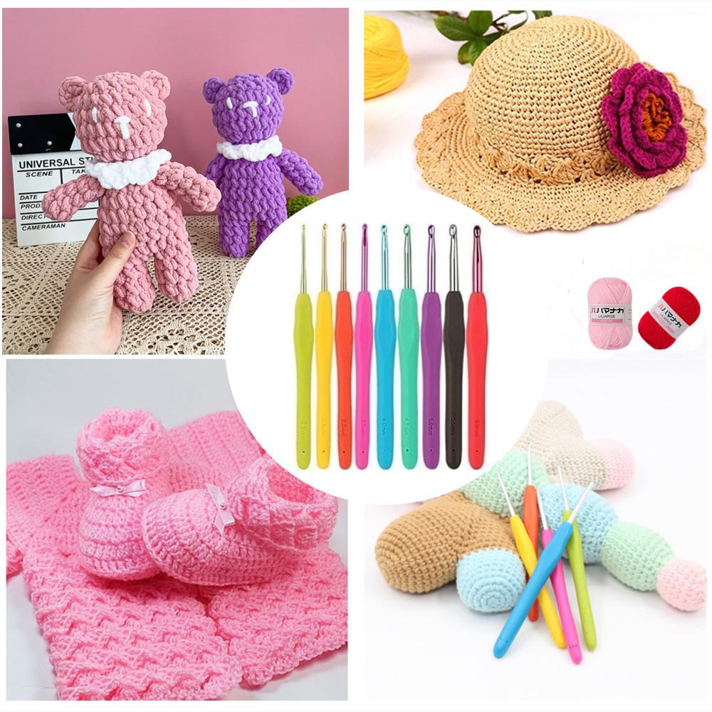 - 【Great Value】This crochet kit includes different crochet hooks and crochet accessories: 9 ergonomic soft handle crochet hooks (2.0-6.0 mm), 12 lace crochet hooks(0.6-1.9 mm), 8 balls of yarn,32 pieces crochet accessories and 1 pink storage bag.Complete crochet kits for beginners and adults.If you are a beginner, you will no longer need to purchase other crochet accessories.