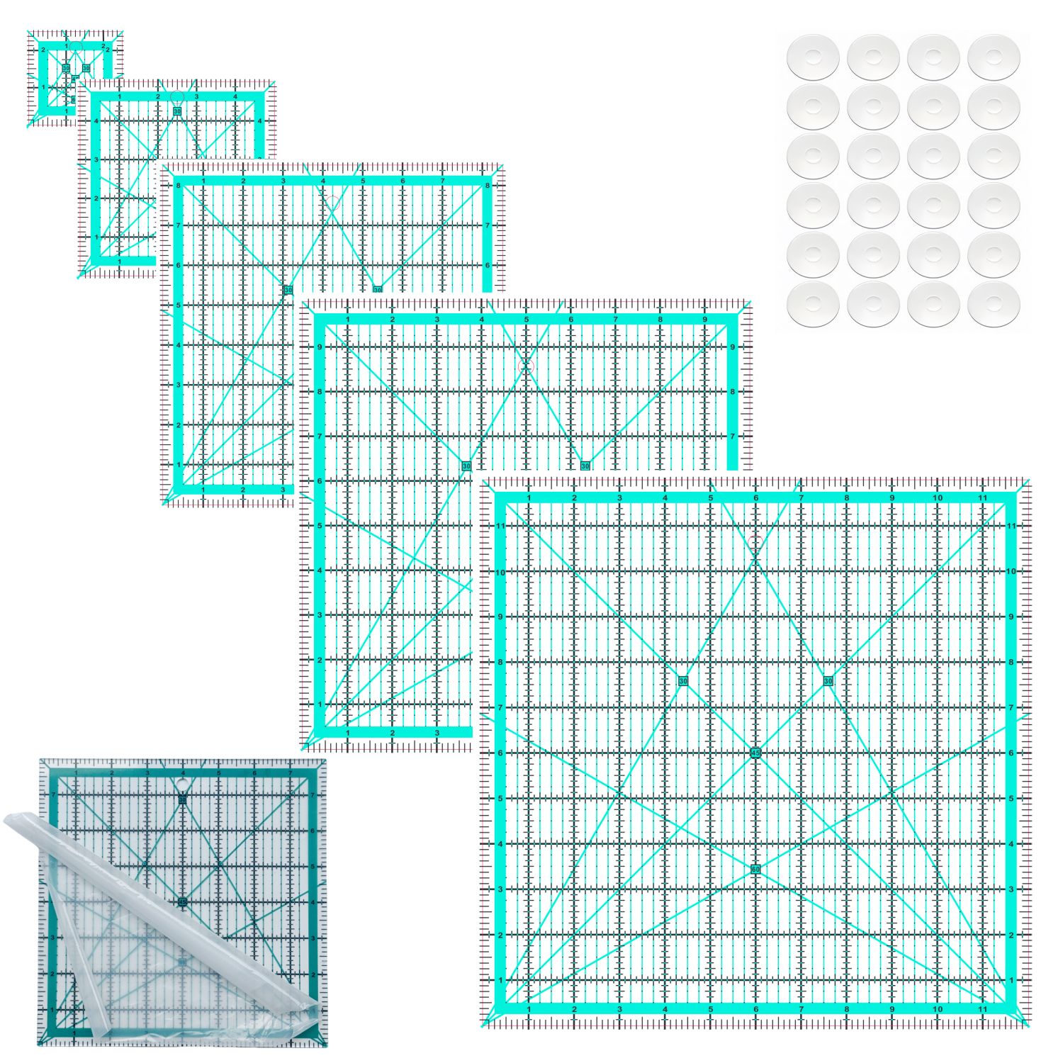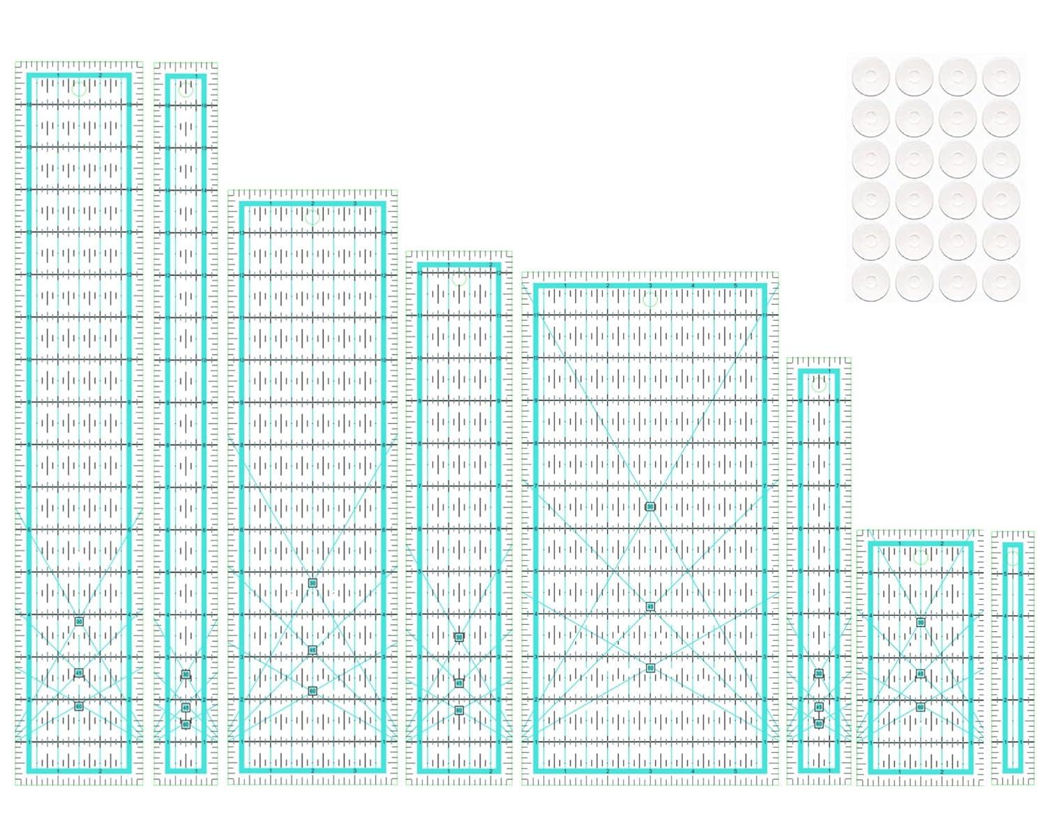 - Quilting Cutting Squares Set:Our quilting rulers includes 7 quilting square rulers (2.5'',3.5",5",6.5'',8",10",12.5")to meet all your patchwork needs.The non-slip rings keep the quilting templates in place to ensure cutting accuracy
