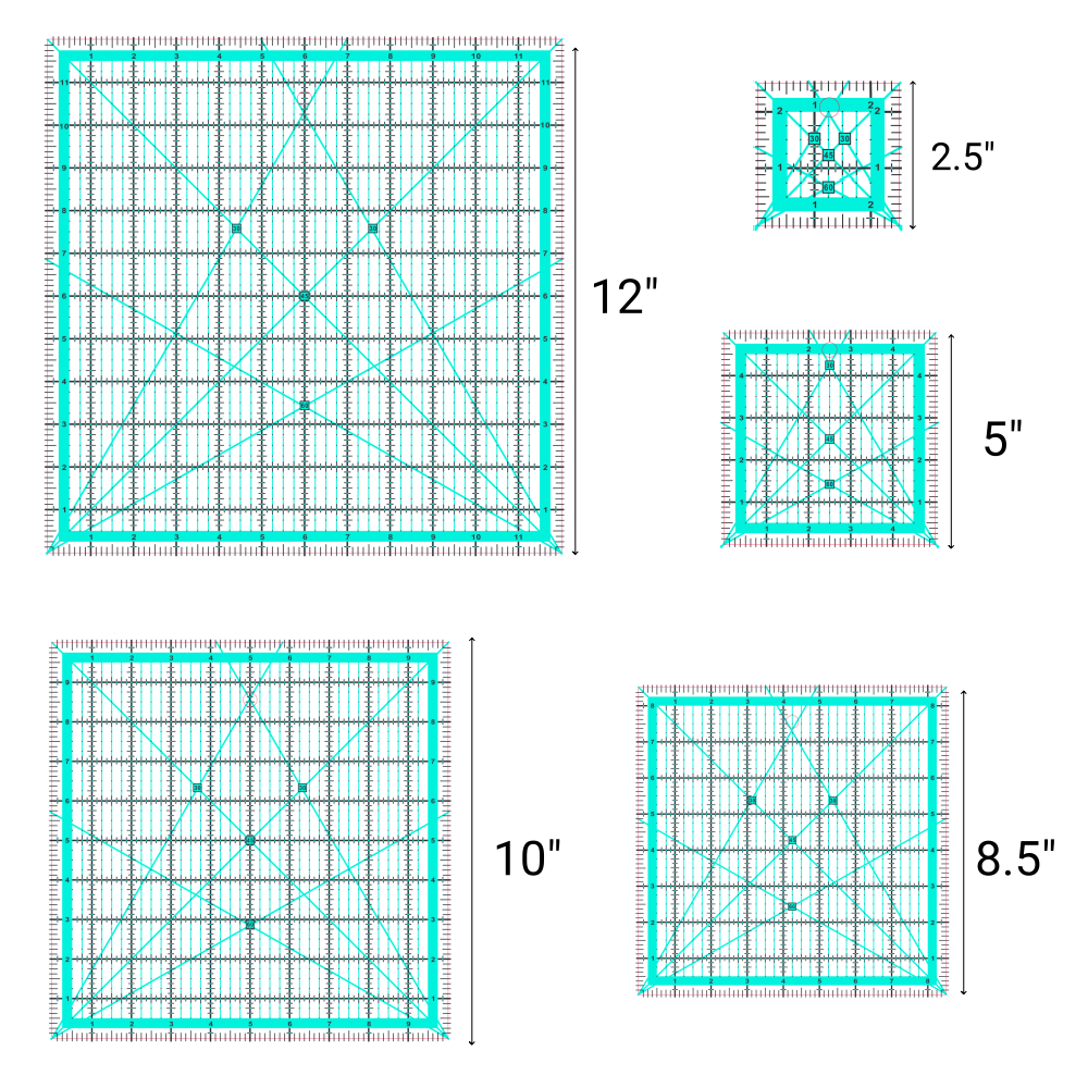 - Quilting Ruler Sets:Quilting rulers includes 5 quilting square rulers (2.5",5",8.5",10",12")to meet your different needs.The non-slip rings keep the quilting templates in place to ensure cutting accuracy